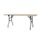 This 72in rectangular banquet table is designed to accommodate up to 8 guests, making it ideal for larger gatherings like corporate events and banquets. Its brown wood finish brings a warm, classic look to any setting, while the folding legs allow for easy transport and space-saving storage.